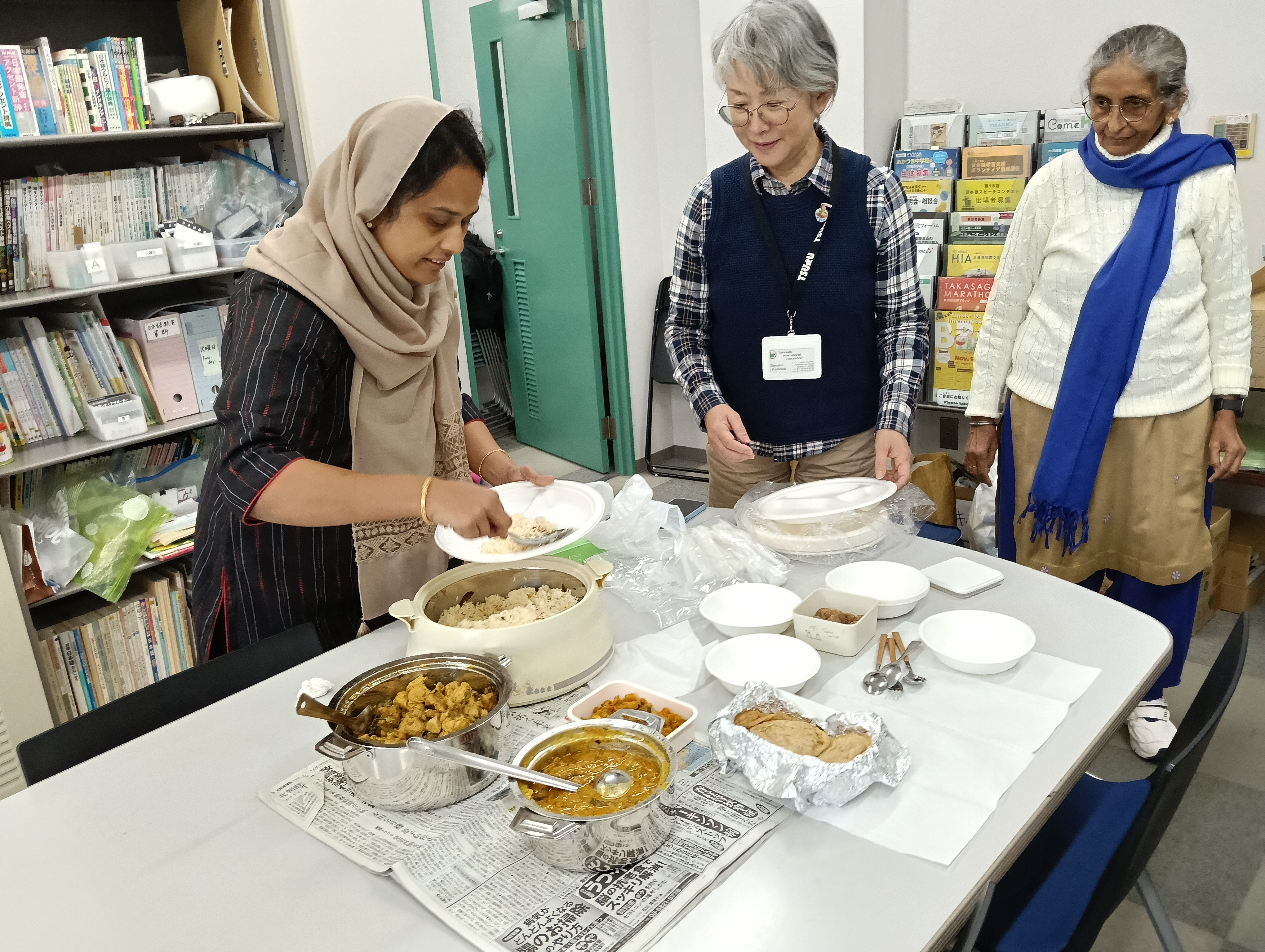 インドの人は朝からインドの家庭料理を作ってもってきてくれ、お昼にみんなで食べました。